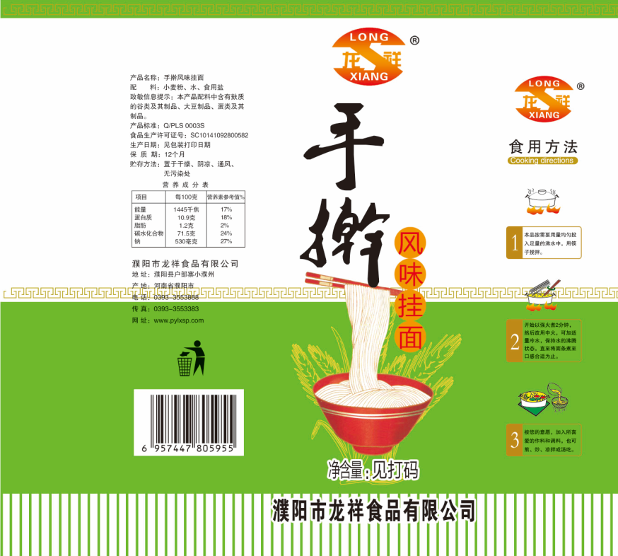 濮陽市龍祥食品有限公司位于河南省濮陽縣戶部寨鎮小濮州,始建于1994年,前期投資200萬元,經過幾年的努力,大力開發市場,由于市場的需求量急劇上升,出現供不應求,于2004年擴建,建成一座新型的現代化面粉加工企業,并擁有全國先進全自動生產設備一套,產量由以前的100噸/天,提高到現在400噸/天。 2012年再次擴大規模申請為濮陽市龍祥食品有限公司,注冊資金500萬元。2012年又投資800萬元新建掛面生產線一條,日產掛面50噸。龍祥食品有限公司現有職工120余人,總工程師1人,專業技術人員10人,經濟師1人,會計師1人,銷售人員2人,優秀專業人員20余人?! ↓埾楣咀詣摻ㄒ詠?,社會效益十分可觀。公司一直以“今天的質量,明天的市場”為信念,“一切為了客戶需求,竭誠追求完美品質”為企業宗旨,走專業化經營和職業化管理的路子。